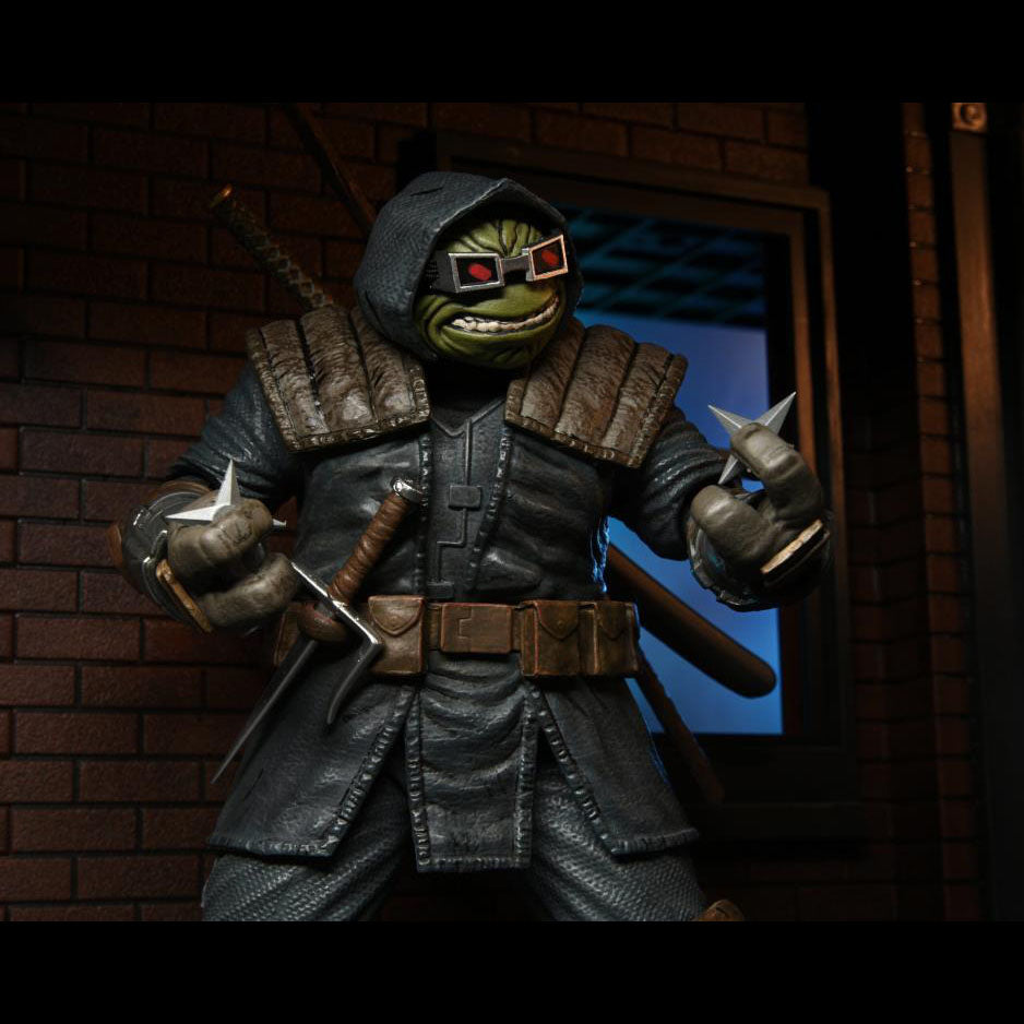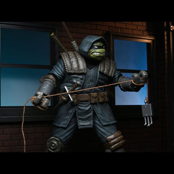 This armored version of The Last Ronin action figure is authentic to the comic book depiction and stands in 7" scale. Includes goggles, grappling hook, tonfa, smoke bomb, sai, katana, bo staff, nunchucks, and interchangeable head and hands.